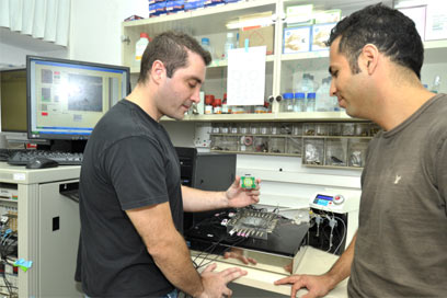 פרופ' פטולסקי והצוות עם הגלאי המתוחכם (צילום: מיכל ראש בן עמי)