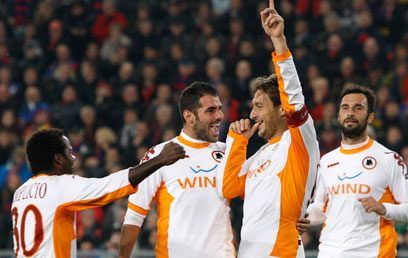 פרנצ'סקו טוטי ושחקני רומא חוגגים בשוייץ (AP)
