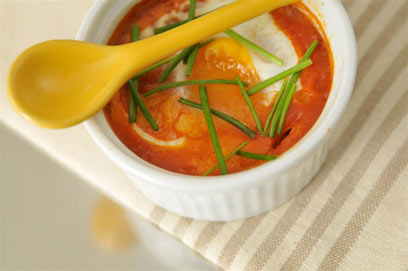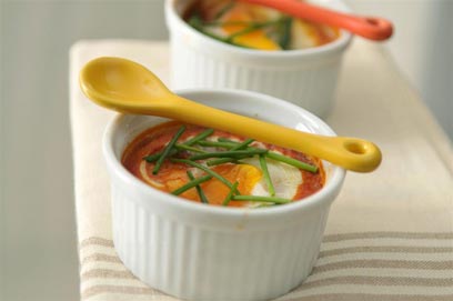 "שקשוקה" בתנור: מניחים בתחתית הכלים המשומנים 1-2 כפות רוטב עגבניות או סלט מטבוחה. שוברים את הביצה מעליו וממשיכים כנ"ל. אפשר להשמיט את הגבינה.