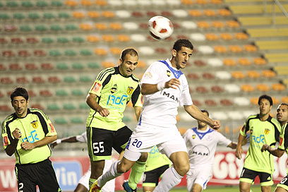 מישאלוב עולה לכדור גובה עם דודו ביטון (צילום: אורן אהרוני)