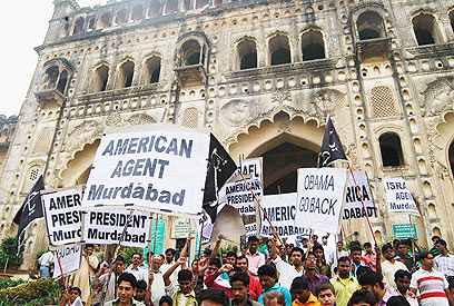 הפגנה אתמול נגד ביקורו של אובמה בהודו (צילום: רויטרס)