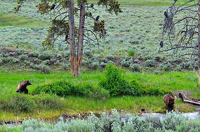 גל ברנשטיין סיפר לנו שבילה עם אשתו בפארק במשך חמישה ימים בחודש יולי האחרון. "במהלך נסיעה באזור Lamar Valley לכיוון מזרח (צמוד לנהר), ראינו משהו קורה על הגדה הרחוקה. מייד עצרנו ולקחנו רוורס, רק בכדי לגלות דוב גורר משהו מהמים".
