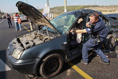 נהג המשאית נחקר. זירת התאונה (צילום: חגי אהרון)