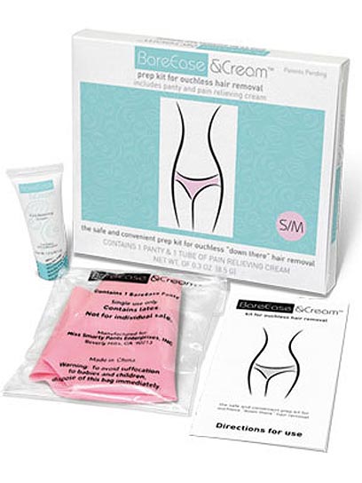 איך את אמורה להסתובב עם קרם חצי שעה, ועוד בפרהסיה, את שואלת? כאן נכנס לעבודה השחקן השני בערכה, תחתוני חוטיני מלטקס, שאותם את לובשת מיד לאחר משיחת הקרם. על התחתונים ניתן להעמיס את שאר מלבושייך, בלי לחשוש ממריחות. רגע לפני המריטה תוכלי להוריד את הקרם וליהנות מחוויית הסרה מתקנת. טוב, "ליהנות" זו הגזמה, אבל הפרכוסים, העוויתות והצווחות בהחלט יהפכו להיסטוריה. אי אפשר להשיג את התכשיר בארץ, אבל אם את ממש בעניין תוכלי לעשות זאת באתר הזה.