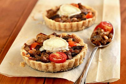 - מניחים על הבצק את התערובת של החצילים ועגבניות השרי. יוצקים מעט מהבלילה ומניחים פרוסות מגבינת הצאן, יוצקים את יתרת הבלילה ואופים בתנור שחומם מראש ל-180 מעלות כ-40 דק'.