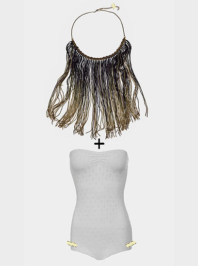 מתחברים לגוף אחד. בגד הגוף העדין של אלף אלף מקבל טוויסט לצד שרשרת אוברסייז של קסטרו (צילומים: דן לב, טל טרי)