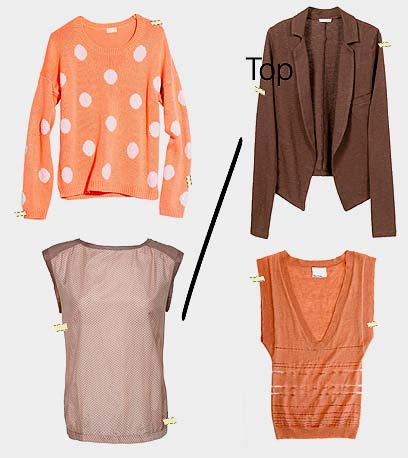 מתחת או מעל, העיקר מוסיפים קצת צבע. בכיוון השעון: ז'קט בד, של אמריקן וינטג' (המלצה שלי - אחת הקניות הכי ראויות לעונה), סריג נכון בצבע הנכון, בגודל הנכון של רוס אובאטה, זהירות להיט מתקרב: חולצה חסרת שרוולים עם כפתורים בגב של ג'י סטאר ולקינוח: סריג דקיק, מתוק וכתום של H&M (צילומים בהתאמה: אבי ולדמן, טל טרי, הנס ומוריץ)