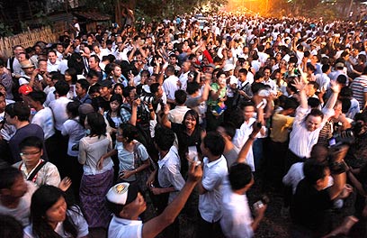 החגיגות שליוו הערב (שבת) את שחרורה של אונג סן סו-צ'י, מנהיגת האופוזיציה הדמוקרטית במיאנמר, אחרי 7 שנים רצופות במעצר בית - הוא ניצחונה הגדול של כלת פרס נובל לשלום על חונטה הצבאית השולטת במדינה מזה עשרות שנים.