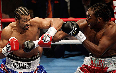 היי (משמאל) מכה בכל הכוח את האריסון (רויטרס)