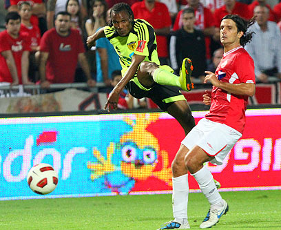 דקה 13: סוף סוף הזדמנות ראשונה במשחק. עמית בן שושן ניסה את מזלו עם בעיטה חזקה מ-20 מטרים שנהדפה על ידי וינסנט אניימה אל מעל לשער ויצאה לקרן.