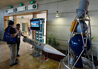 דגם של חץ 3 בוועידת החלל בירושלים (צילום: רויטרס)