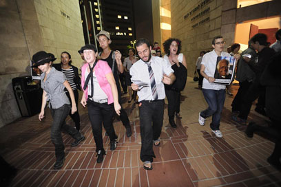 מחאת השמאל, בפתח הצגת הבכורה של "פורגי ובס" (צילום: דודו אזולאי)