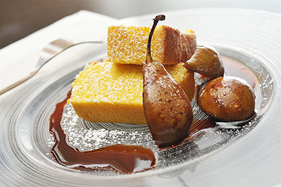 עוגת פולנטה ואגסים ביין (צילום: ירון ברנר)
