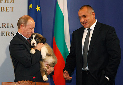מתנה בולגרית. בוריסוב, פוטין והחבר החדש (צילום: רויטרס)