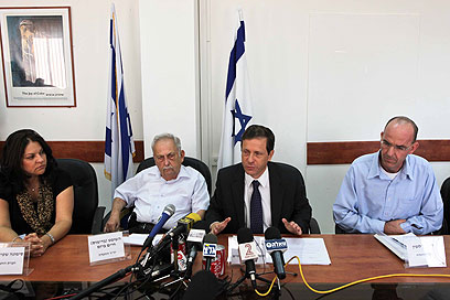 חברי הוועדה והשר הרצוג בעת מסירת הדו"ח (צילום: נועם מושקוביץ)