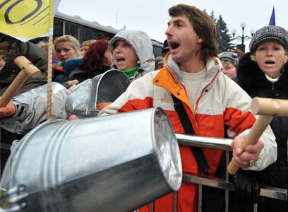 מחאה פוליטית באוקראינה: מכות ומטר מטבעות