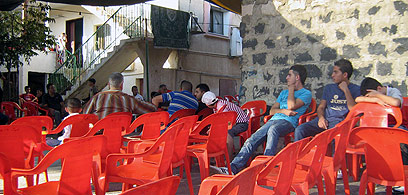 סוכת האבלים בחצר ביתה של הנרצחת, היום (צילום: אתר פאנט)