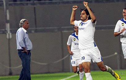 בדש חוגג, יוסי מזרחי מנסה לעכל את השער (צילום: אלי אלגרט)