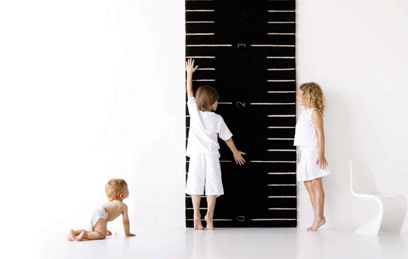 שטיח צמר עגול בצורת חוגה ארוג בעבודת יד של המעצב הספרדי הנודע, José A. Gandía-Blasco, שעיצב קולקציה משעשעת של שטיחים לחדרי ילדים בצבעים בסיסיים של שחור, לבן ואדום. מחיר החל מ – 1,400$.