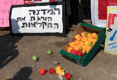 חילקו פלפלים לנהגים. ההפגנה בצומת הערבה (צילום: צפריר אביוב)