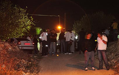 ניידת משטרה בפתח בית המשפחה בעוספיה (צילום: אבישג שאר-ישוב)