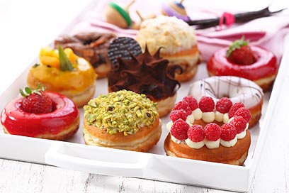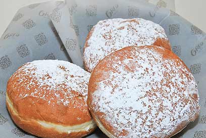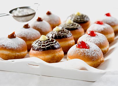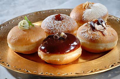 'שמו הקונדיטוריה' מציעים מגוון סופגניות בטעמים וצורות שונות. בין המבחר תמצאו סופגניות אקזוטיות, במילוי מנגו, אננס ופסיפלורה, סופגנית טירמיסו במילוי מסקרפונה, סופגניית אספרסו במילוי קרם קפה ואגוזי לוז, סופגניית קיפוד בציפוי טראפלס שוקולד בצורת קיפוד, ולחובבי הרומנטיקה: סופגניות פירות יער במילוי קרם פטל או סופגנית וניל במילוי קרם פטיסייר וציפוי פונדנט לבן ועוד. מחירים בין 5-8 שקל ליחידה. להשיג ברשת שמו קונדיטוריה. פרטים נוספים ומתכונים באתר: www.shemo.co.il