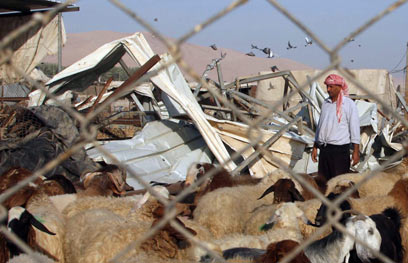 הריסת המאהל באזור משואה (צילום: AFP)
