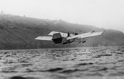 המטוס של לנגלי מתרסק אל הנהר 1914 (צילום: Getty)