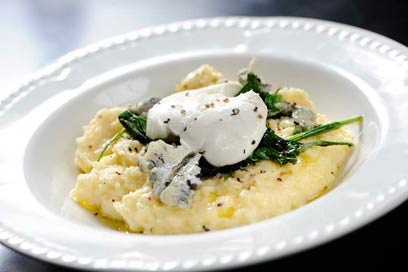 פולנטה רכה עם תרד טרי, גורגונזולה ומסקרפונה