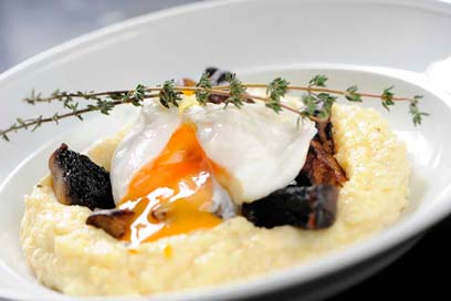 ביצה עלומה ופטריות פורטבלו על פולנטה (צילום: דודו אזולאי)