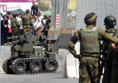 רובוט נגד מטענים במחסום חווארה (צילום: AFP)