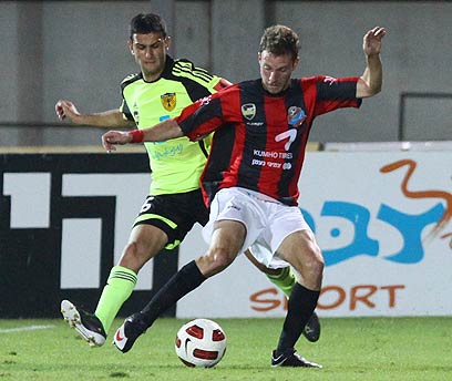 עמית בן שושן בדרך לשער הפועל חיפה (צילום: אלי אלגרט)