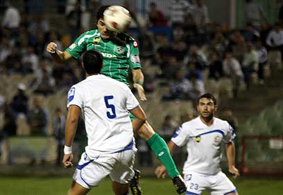 דקה שישית: אייל משומר הגביה כדור מצד ימין, שהגיע ישירות לראשו של ולדימיר דאבלישווילי שנותר לבד ללא מחסה. הגיארוגי נגח חלש, היישר לידיו של סטיבן אהורלו.
