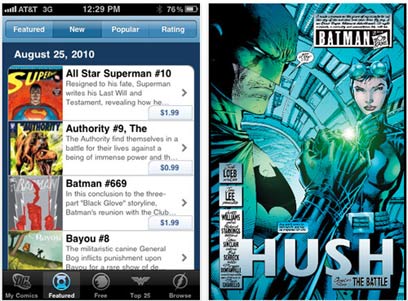 היופי ב-Comixology הוא ההתאמה הנהדרת למכשירי המגע של אפל: כל עמוד קומיקס מחולק לפאנלים, ביניהם ניתן “לדפדף” כמעין סרט אנימציה – מה שמאפשר לקרוא את הקומיקסים בצורה מוצלחת גם על ה-iPhone וה-iPod Touch. הכל עובד בצורה חלקה ומרשימה. האפליקציה כוללת ספרית חוברות, עם מספר גדול של חוברות שניתן להוריד בחינם.