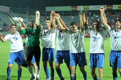 שמחת הניצחון. אשדוד חוגגת את ה-0:2 המדהים (צילום: עוז מועלם)