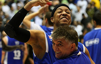 פילברטו ריברה חוגג את הסנסציה מול מכבי ת"א (צילום: אלי אלגרט)