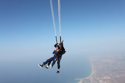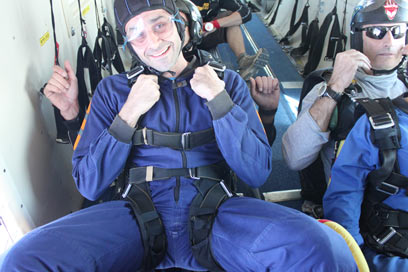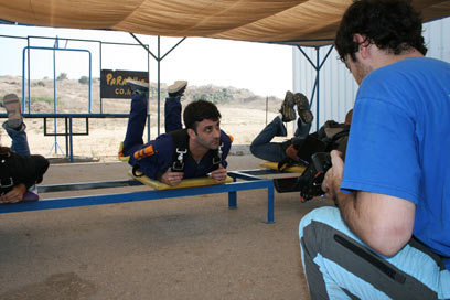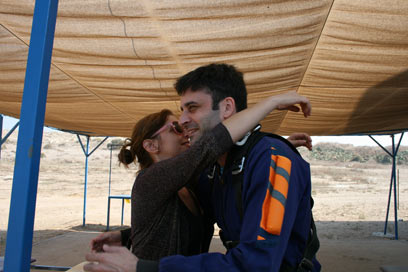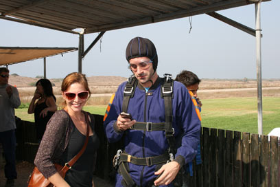 מה לא עושים בשביל התפקיד: גיא לואל עבר קורס מזורז בצניחה חופשית במסגרת צילומים לסדרה "כאן גרים בכיף". נתי קלוגר הצטרפה על תקן המעודדת