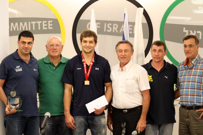 שטילוב והצ'ק במשרדי הוועד האולימפי (צילום: אורן אהרוני)