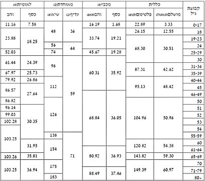 דמי החבר בקופות השונות, כפי שהוצגו בדו"ח (נכון ל-1.7.10)