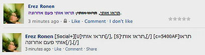 הסטטוס בדפדפן עם SocialPlus, ומתחתיו, אותו סטטוס בדפדפן בלעדיו