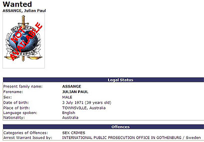 לפי אתר האינטרנט של האינטרפול, אסאנג' צורף לרשימת המבוקשים אתמול, 30 בנובמבר, והוא מבוקש בגין "עבירות מין". עוד נכתב באתר כי מי שפרסם את הצו נגד אסאנג' הוא משרד התביעה הציבורית הבינלאומי בגטבורג שבשבדיה. "אם יש לכם מידע כלשהו, צרו קשר עם המשטרה הארצית או המקומית במדינתכם", נכתב בעמוד המוקדש למבוקש הטרי. נמסרים בו גם תאריך הלידה שלו - 3 ביולי 1971, ומקום הולדתו - טאונסוויל שבאוסטרליה.