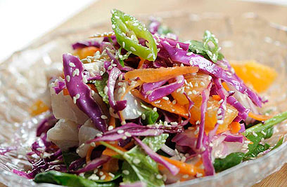 סלט דג ים עם קלמנטינות, כרוב סגול וגזר