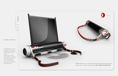 בחברת העיצוב Orkin Design מאמינים שאפשר לבנות מחשבים ניידים מודולריים, בהם המסך הגמיש והגליל ממנו נשלף יתפקדו כשתי יחידות נפרדות - לעיבוד ולתצוגה.