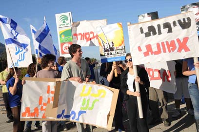תלמידים מפגינים נגד משרד הביטחון: "אנו נענשים" (צילום: אביהו שפירא)