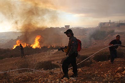 ניסיונות לכבות את השריפה, אתמול אחר הצהריים (צילום: אבישג שאר-יישוב)
