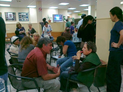 העובדים הסוציאליים העניקו סיוע נפשי בעיקר לקשישים בחדר, שכמו כולם התרכזו במסך הטלוויזיה שהעביר דיווחים חיים בכל הערוצים. בחדר הסמוך התרכזו מול מסכי המחשב בני הנוער והילדים, שהעדיפו להתעדכן באתרי האינטרנט.