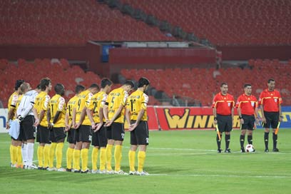 הקבוצות עומדות דקת דומיה לפני שריקת הפתיחה (צילום: אורן אהרוני)