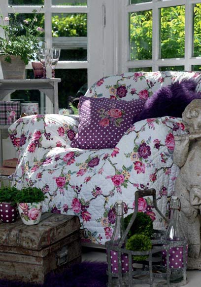 להתכרבל בשמיכות קווילט רכות בהדפסי פרחים רומנטיים שמניחים על הספה או הכורסא