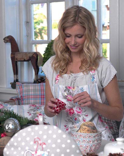 שמיכות קווילט רכות בהדפסי פרחים רומנטיים, כלי מטבח באדום לוהט מעוטרים בנקודות לבנות והדפסים פרחוניים בהשראת הדפסי וינטג' עתיקים. נטשה חיימוביץ' מעלעלת בקטלוג שהגיע אליה מדנמרק ומתאהבת באגדת חורף מושלגת