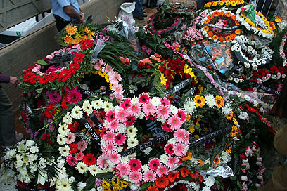 זרי פרחים על קברה הטרי של אהובה תומר (צילום: אבישג שאר-ישוב)